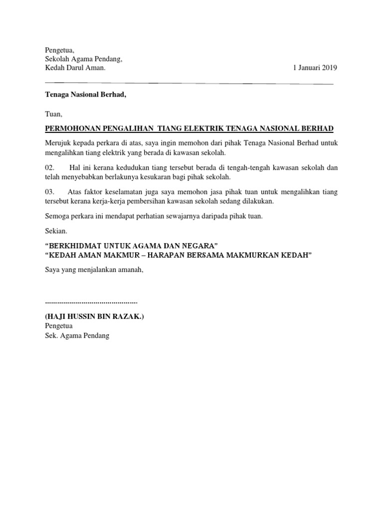 Contoh surat alih tiang elektrik tnb. Oleh kerana itu pihak dewan bahasa dan pustaka telah menggariskan beberapa panduan bagi menulis surat rasmi dengan format yang. Contoh Surat Rayuan Tnb have a graphic from the otherContoh Surat Rayuan Tnb It also will include a picture of a sort that might be seen in the gallery of Contoh Surat Rayuan Tnb.